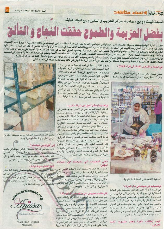 La Marsa ,L'ONA vien d' organiser en collaboration avec le ministére du commerce et de l'artisanat et la municipalité de la ville de la marsa les premiéres journées de l'artianat à la marsa sous le slogant "Promouvoir la ville en protégant son patrimoine"