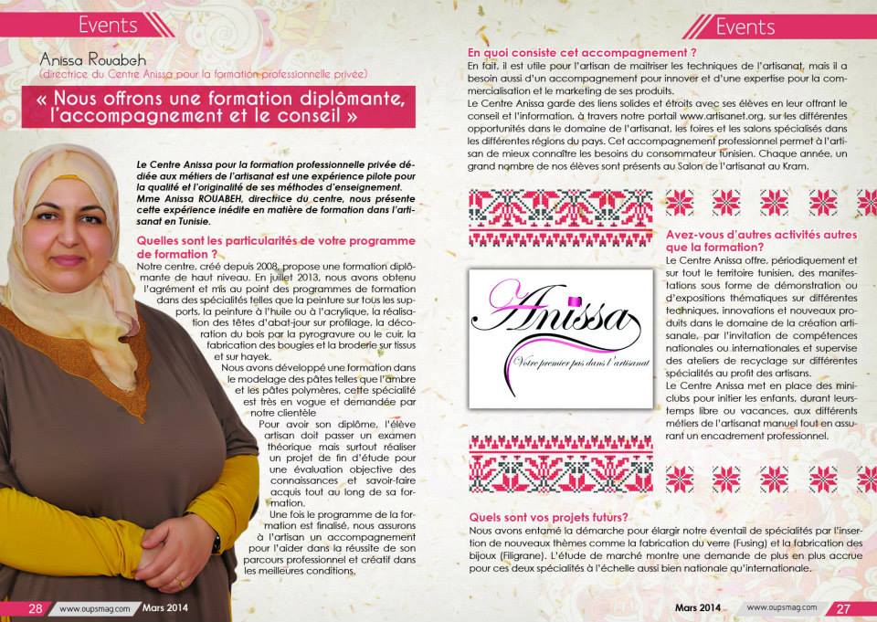 A l'occasion du démarrage de la première édition "Les 10 jours en OR de la Peinture Décorative" au Gouvernorat de BEN AROUS (mourouj 3) le Centre Anissa à le plaisir de vous inviter le 23 juin à 17h pour une démonstration de techniques de peinture dans ces locaux animé par la Directrice du Centre de Formation "Mme Anissa" spécialisé dans les métiers de l'artisanat et la Peinture Décorative - pour participer contacter le 58 44 22 90 - Entré Gratuite